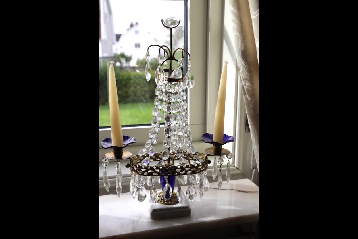 1 par bordslystrar i Gustaviansk stil -dubbla ljushållare - fot i marmor- höjd 37 cm . Säljes från v...