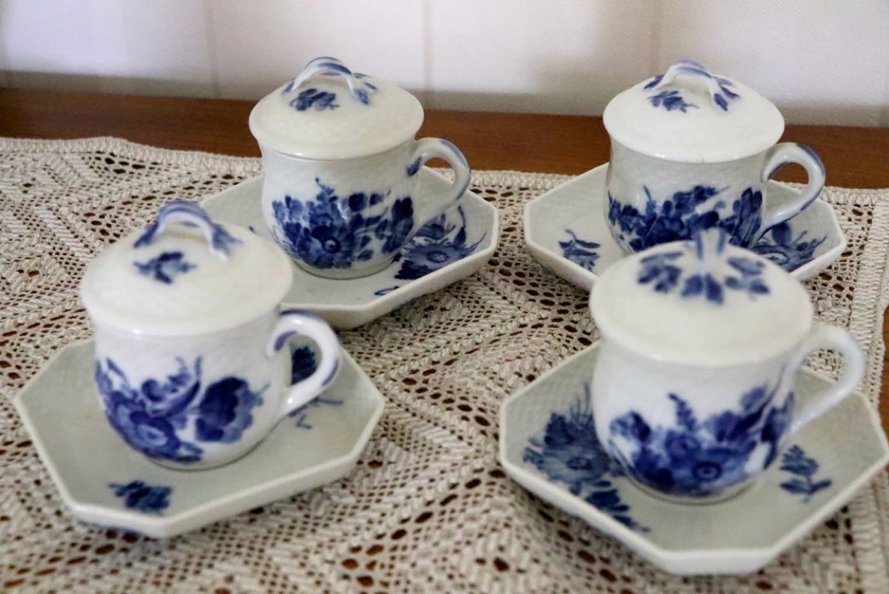 Kunglig Dansk Blå Blomster -4 st chokladkoppar med fat. Säljes från välvårdat hem i Örebro ...