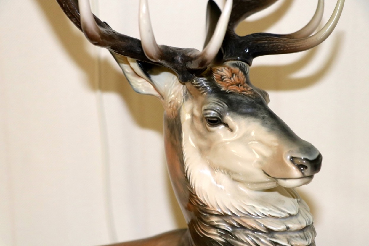 Praktpjäs liggande Hjort i porslin av Professor Theodor Kärner Eisenbach 1947-1953 - avbildad i medf...