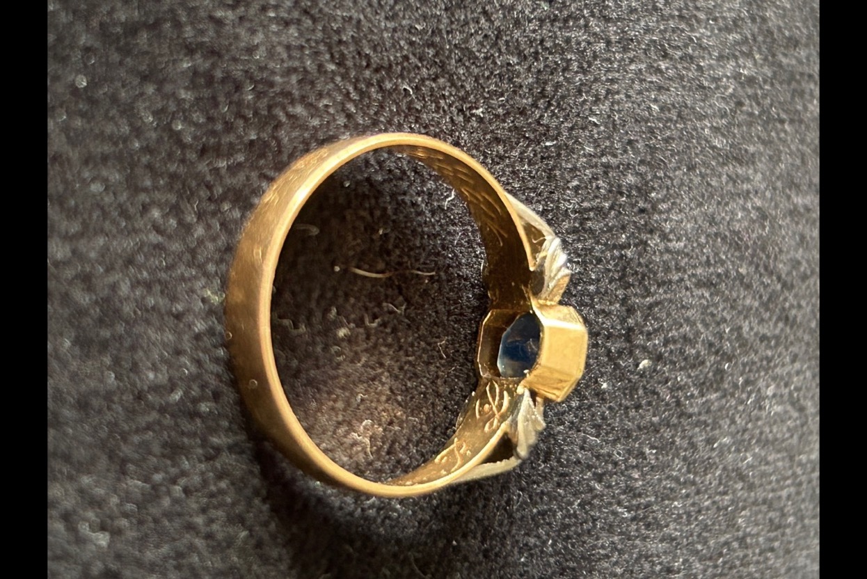 Antik ring C6 1881 i 18 karat Guld med Safir och 2 briljanter -ringstorlek 18 mm. Säljes från välvå...