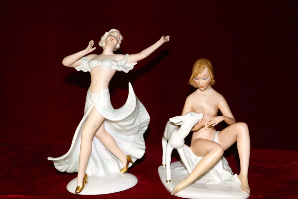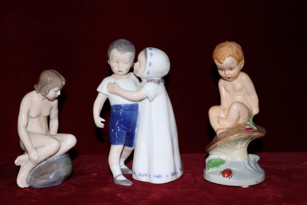 362671 st Royal Dux - 2 st Royal Copenhagen porslinsfiguriner högsta 17.5 cm. Säljes från välvårdat h...