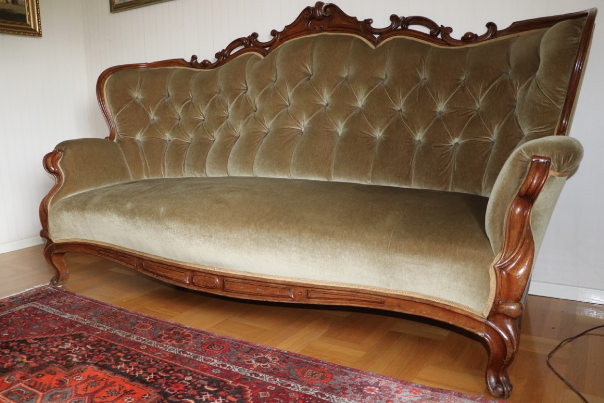36248Stilsoffa i plysch - djuphäftad rygg -längd 220 cm - höjd 125 cm. Säljes från välvårdat hem i Ör...