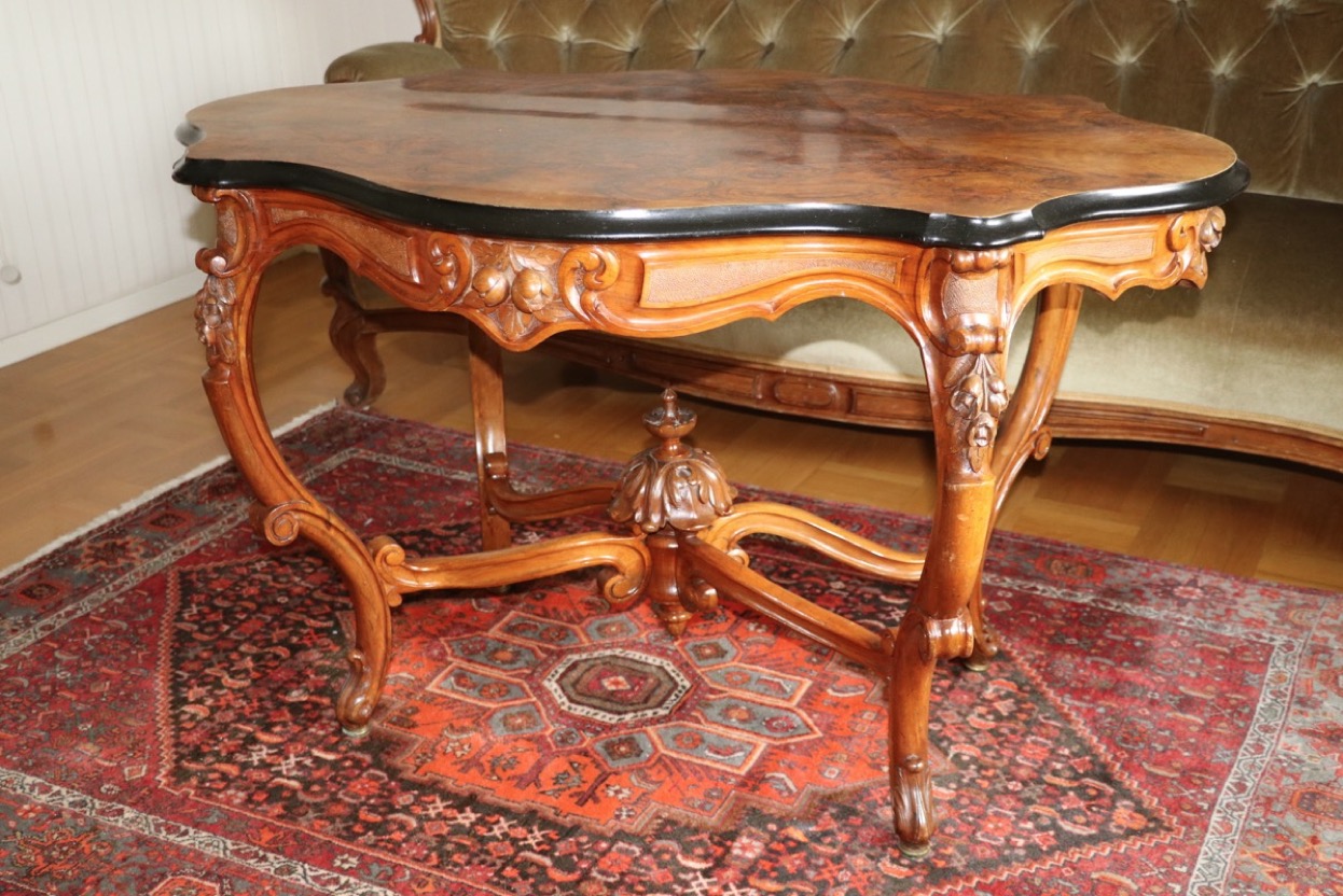 362501800 tals bord i valnöt med skiva i valnötsrot -skiva 123 x 80 cm - höjd 75 cm. Säljes från välvårda...