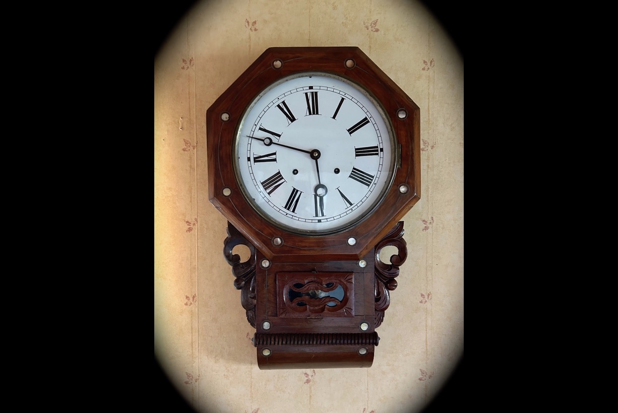 363501800 tals väggur med inläggningar i Pärlemor. Säljes från välvårdat hem i Örebro utlämning Söndag ...