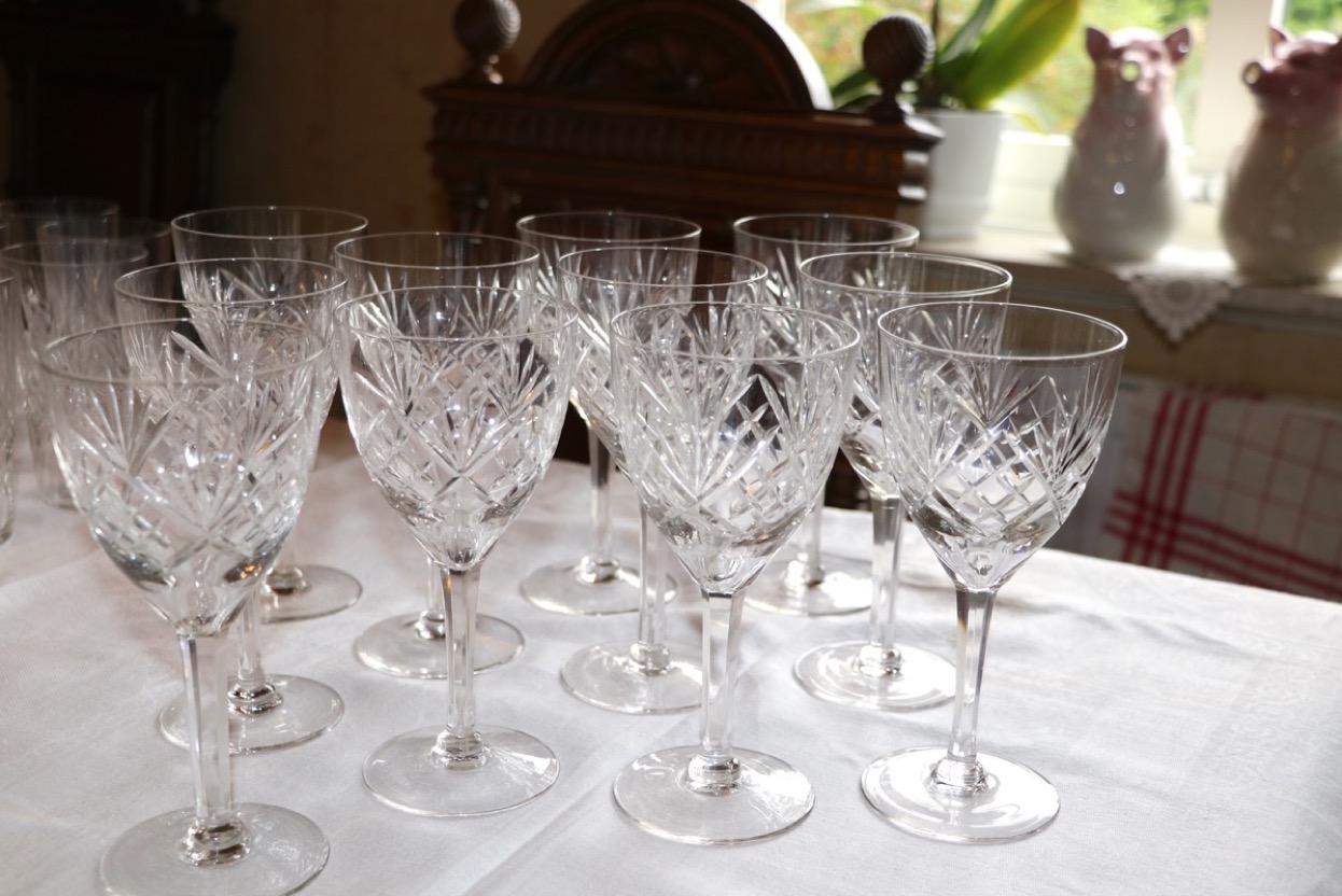 36270Helga glas i kristall 11 st vinglas. Säljes från välvårdat hem i Örebro utlämning Söndag 26 Okt...