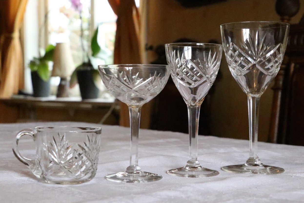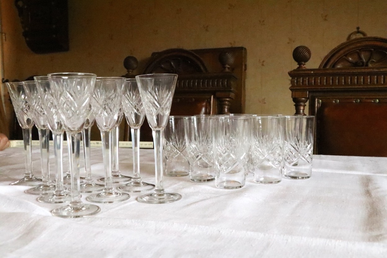 36273Helga glas i kristall: 6 st Sherry/starkvin glas -6 st glögg/punch glas -9 st likörglas höga -12 st ...