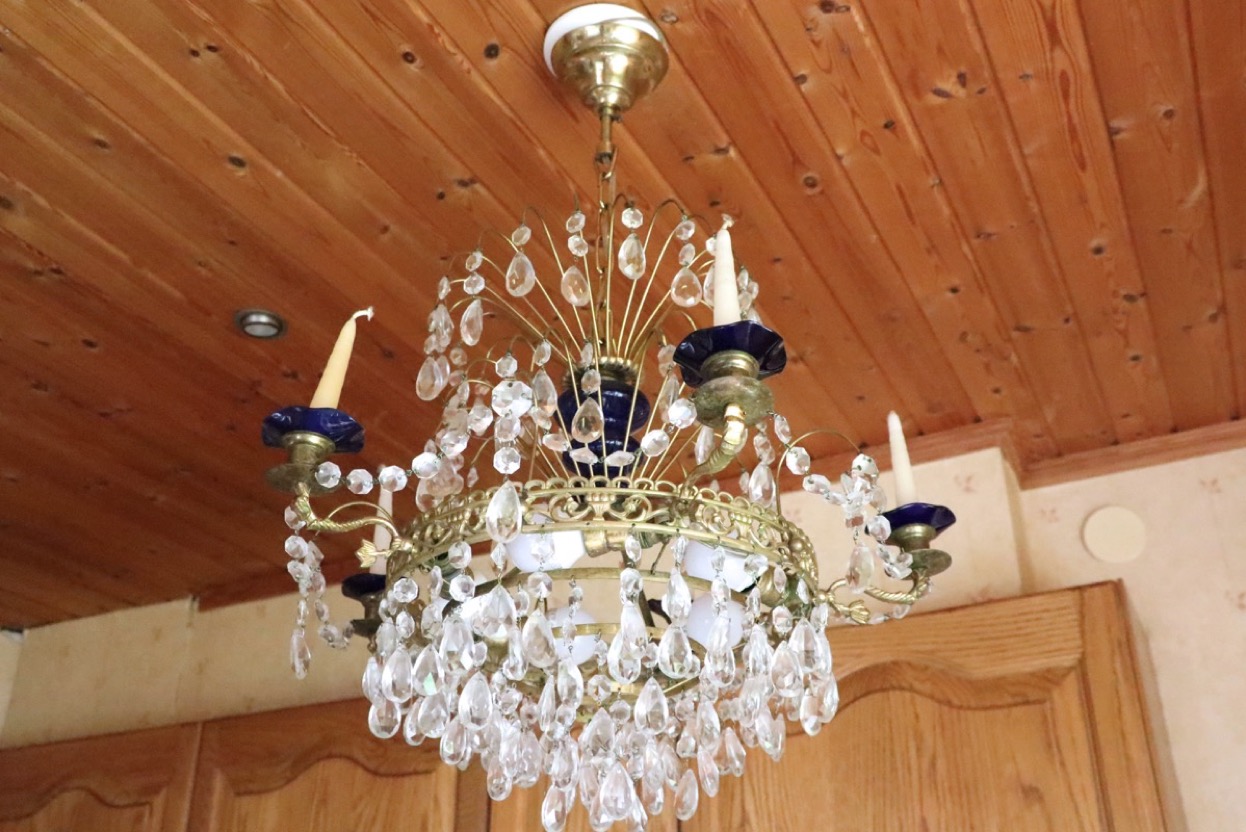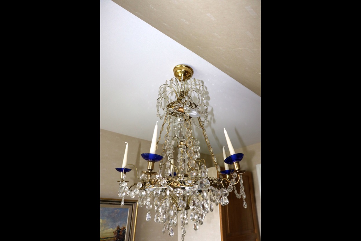 36278Ljuskrona med ljushållare -eldragen -höjd 69 cm diameter 42 cm. Säljes från välvårdat hem i Örebro...