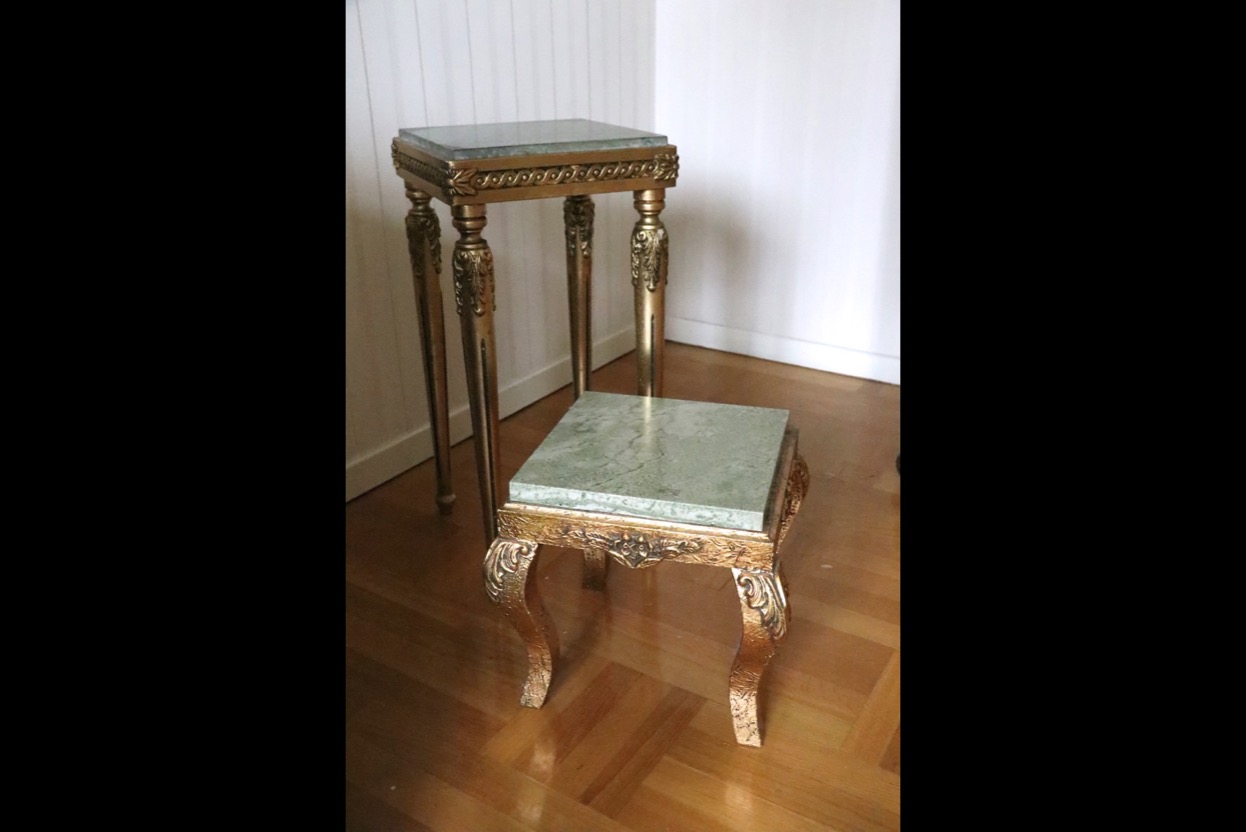 362822 st förgyllda piedestaler med skiva i Kolmårds marmor - höjd 55 - 27 cm. Bruksslitage. Säljes f...