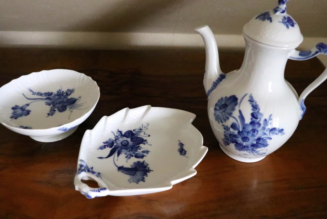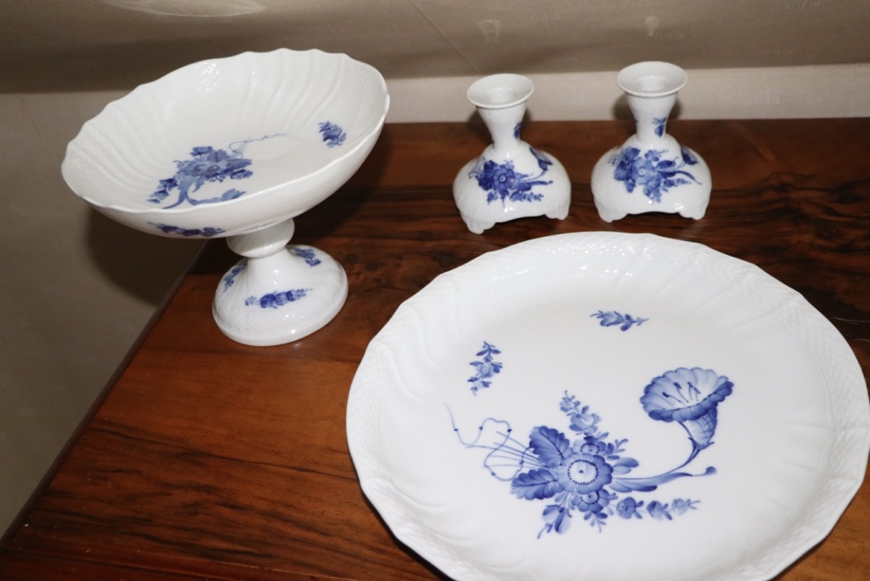 36284Kunglig Dansk Blå Blomster: skål på fot höjd 15.5 cm - ljusstakar höjd 11 cm fat 29 cm. Säljes fr...