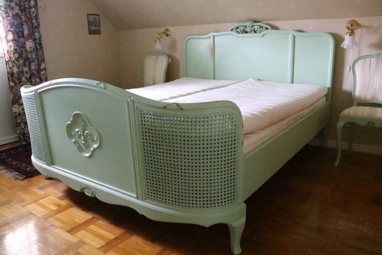 36288Dubbelsäng mitten 1900 med 2 stolar - bredd 160 cm med specialtillverkad resårmadrass - med rundade ...
