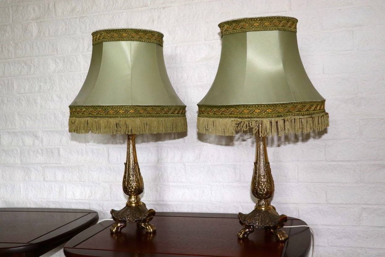 362921 par bordslampor 1970 tal i gjuten mässing - höjd med skärm 62 cm. Säljes från välvårdat hem i ...
