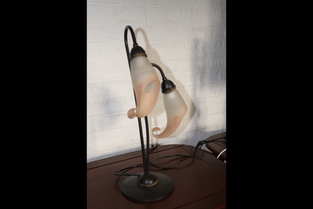 36293Bordslampa i metall med 2 glaskupor Jugendstil höjd 53 cm. Säljes från välvårdat hem i Örebro ut...