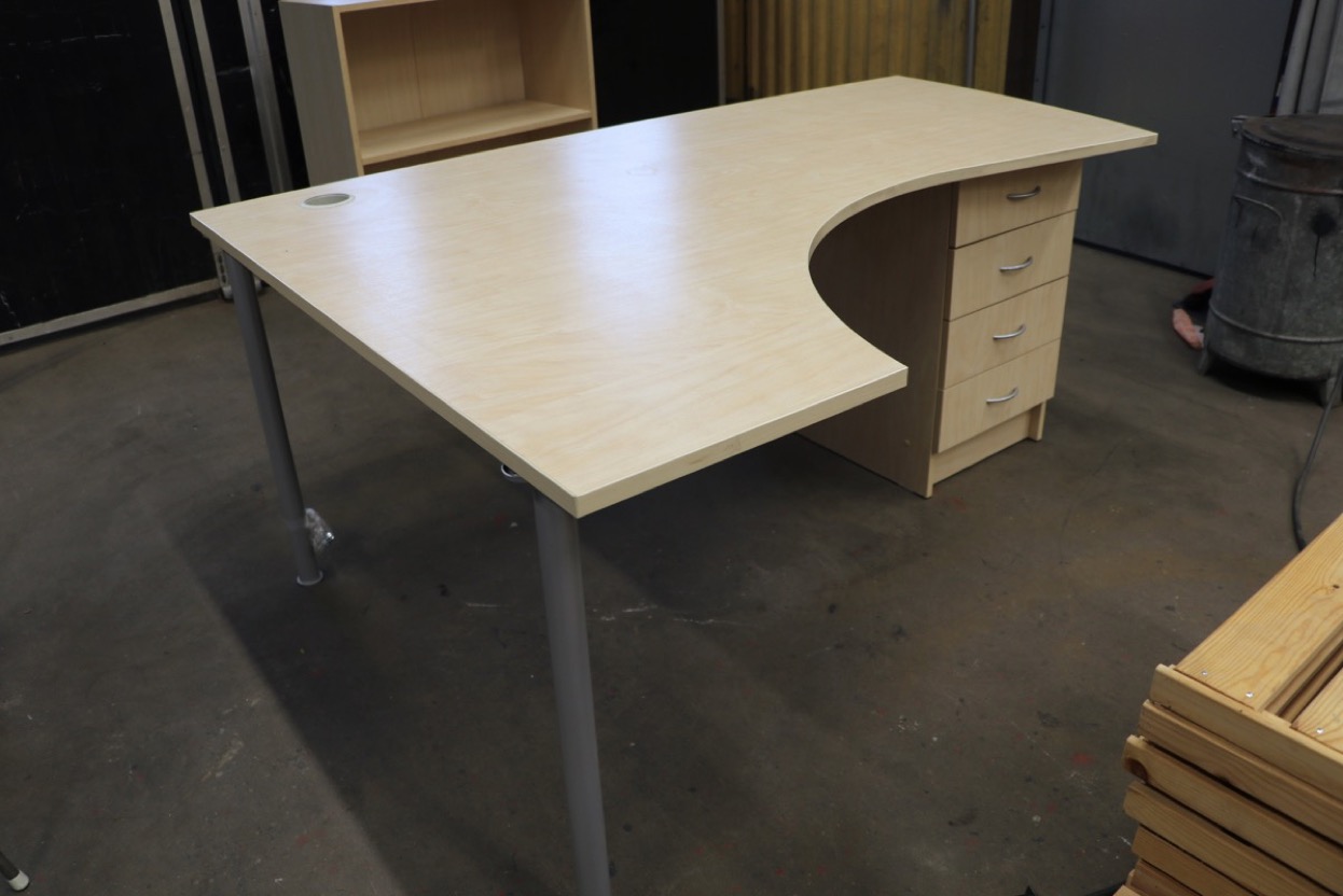 Skrivbord med fristående hylla -skiva längd 1650 mm -skiva djup 1200 -700 mm. Lagerort Lindesberg ...