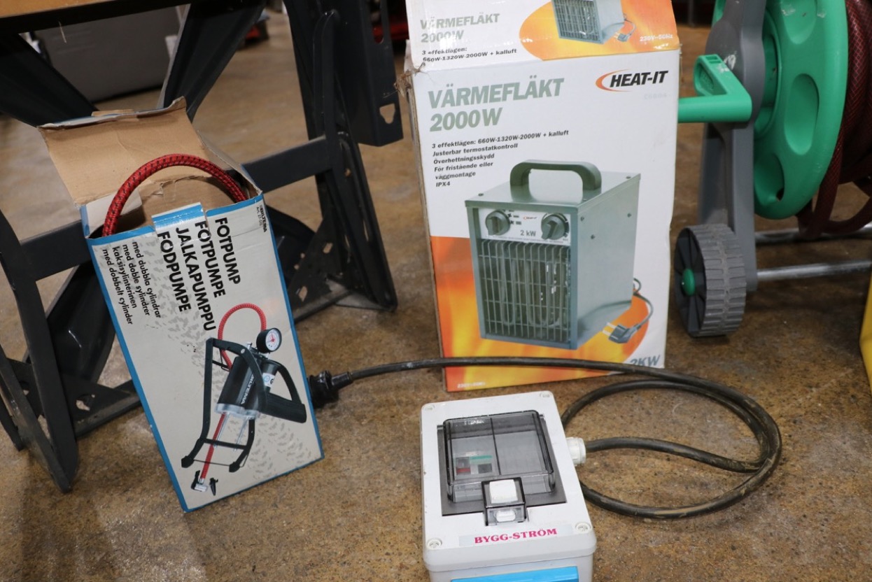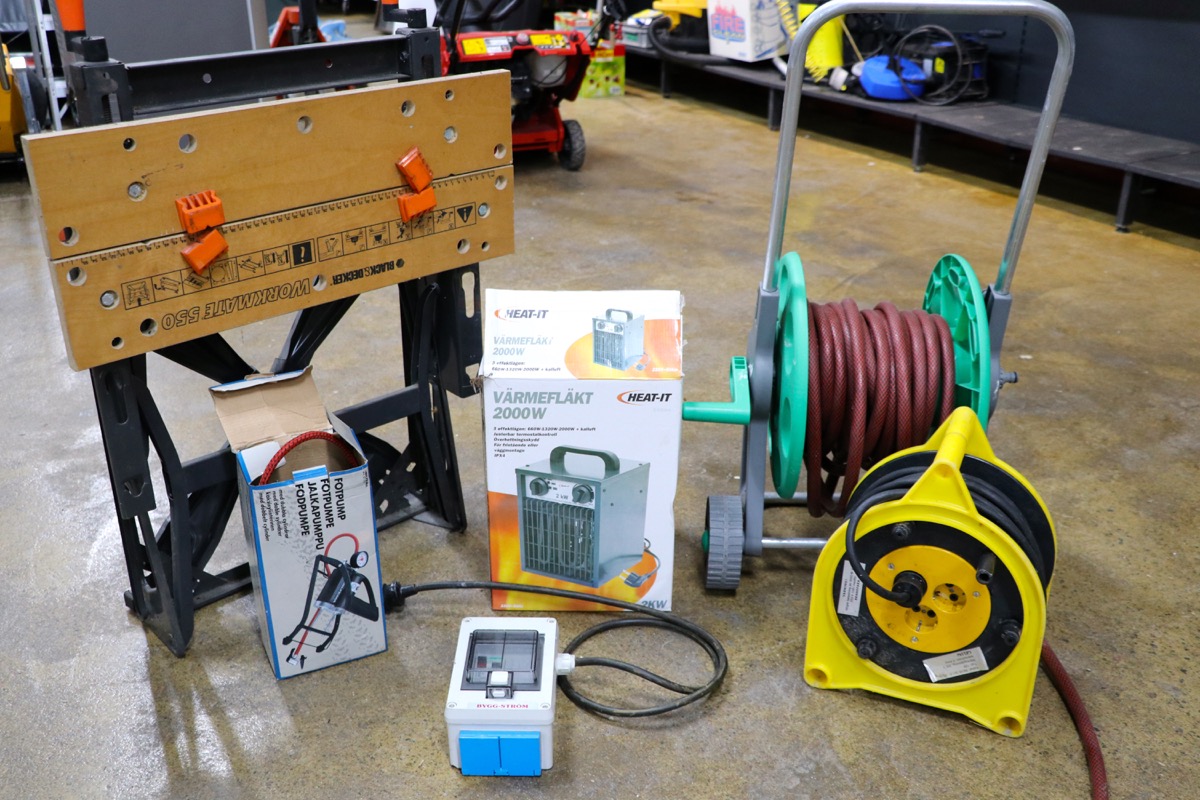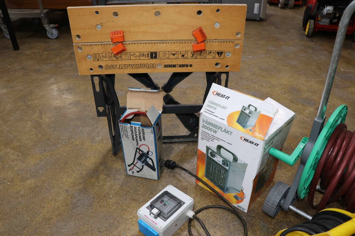 Vikbart arbetsbord -eltemper -sladdvinda -jordfelsbrytare - slangvinda - fotpump.