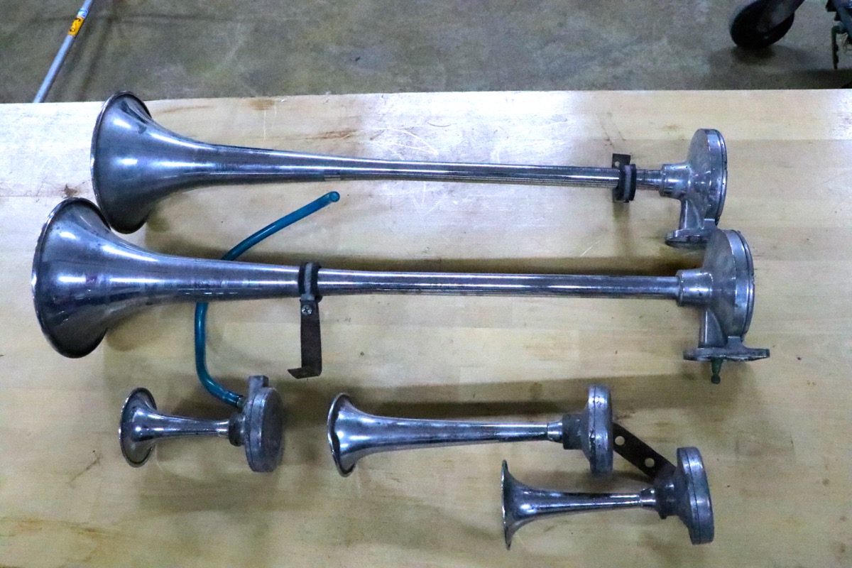 Äldre kompressorhorn veteran -längder mellan 13 -60 cm.