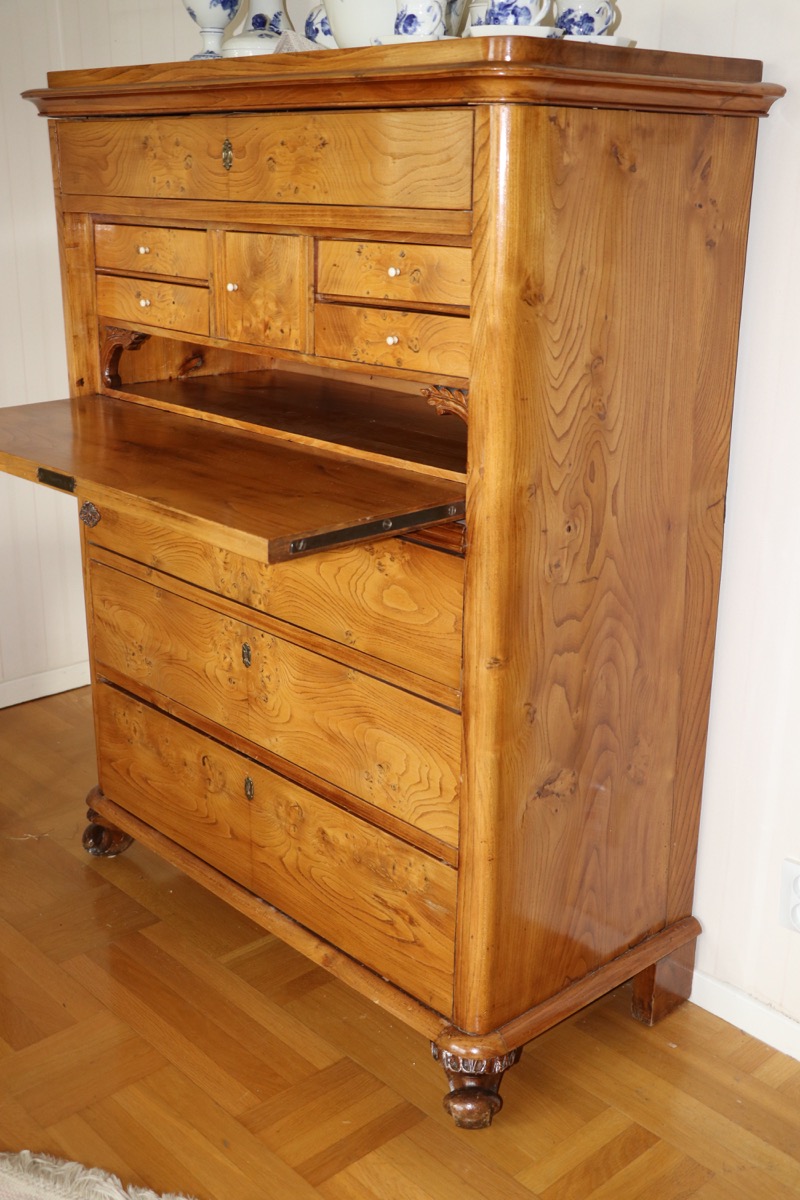 Byrå 1800 tal med skrivdel -höjd 126 -bredd 98 -djup 46 cm. Säljes från välvårdat hem i Örebro utlämning Söndag 26 Oktober mellan kl 11.00 -15.00 -adress och kontaktuppgifter kommer på mail efter betalning.