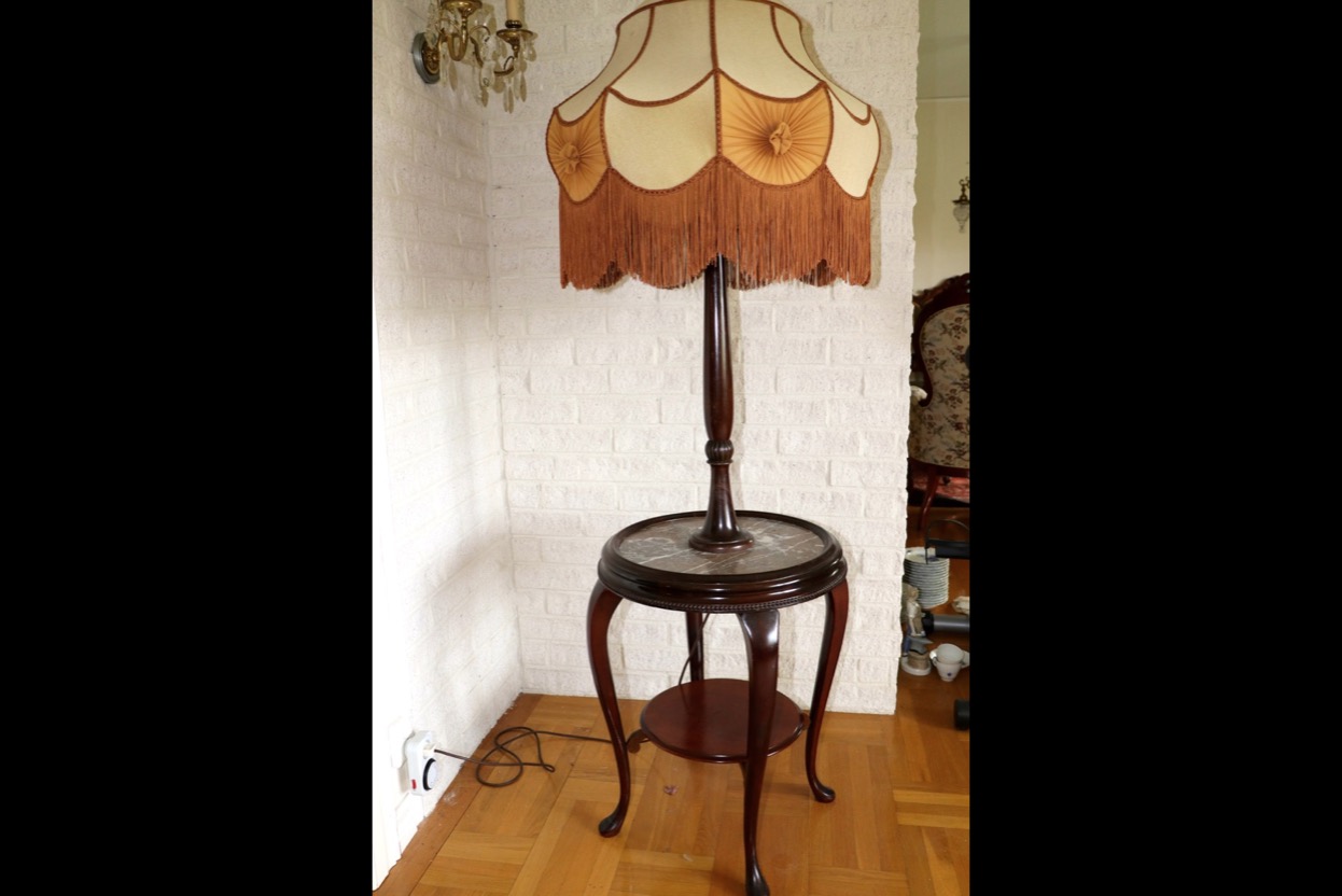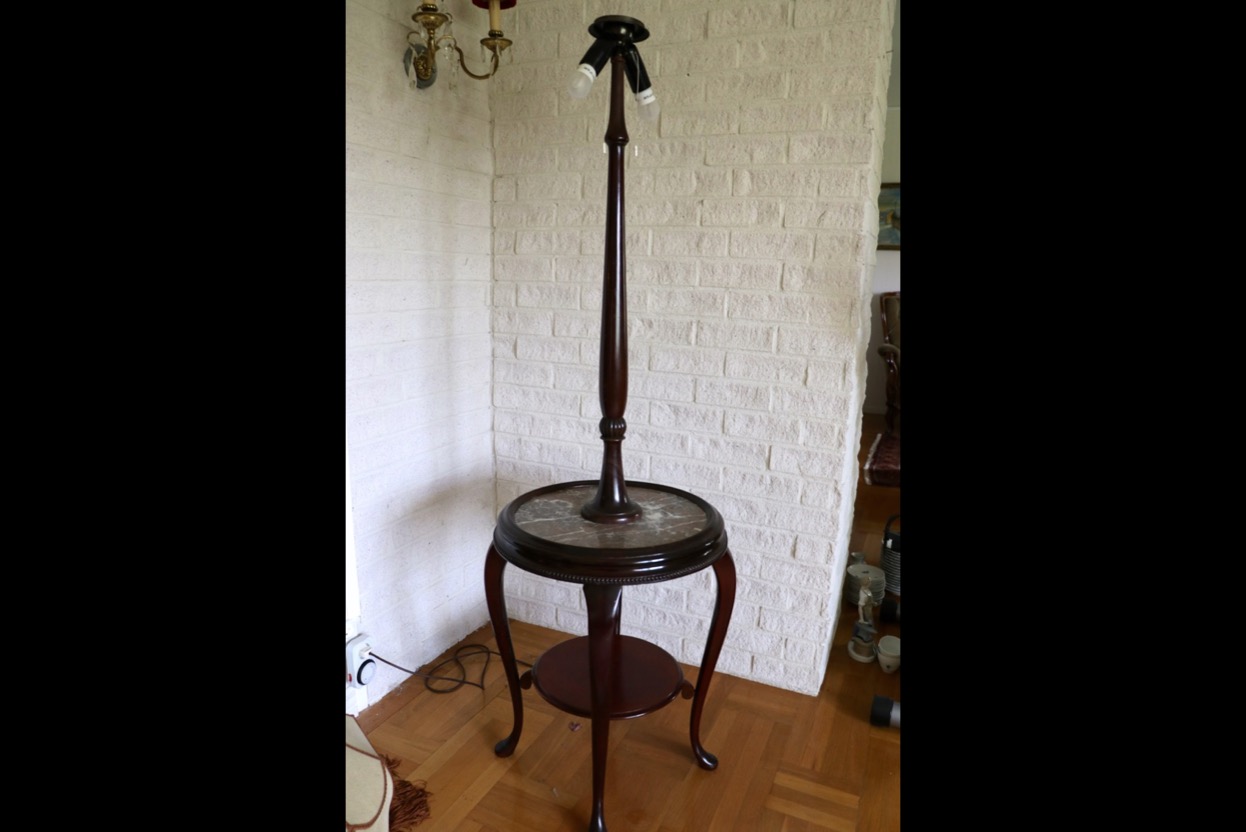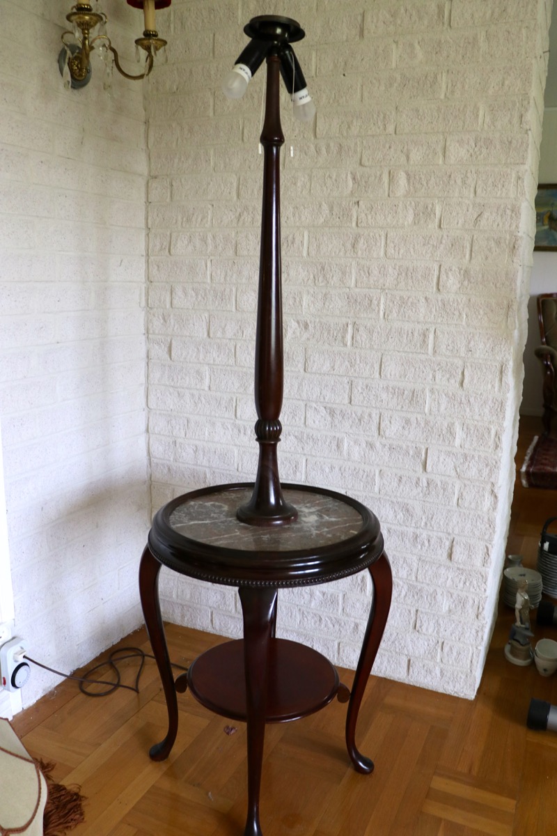 Lampbord med stenskiva - höjd 163 cm -diam skiva 48 cm. Säljes från välvårdat hem i Örebro utlämning Söndag 26 Oktober mellan kl 11.00 -15.00 -adress och kontaktuppgifter kommer på mail efter betalning.