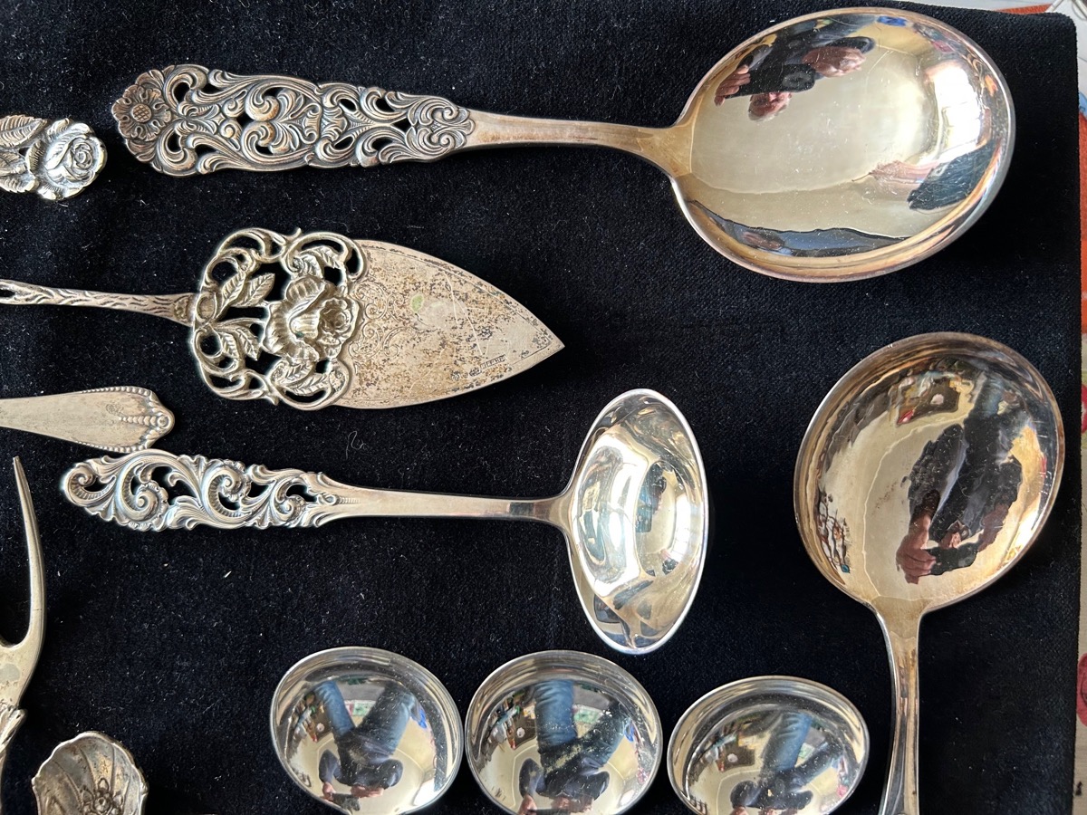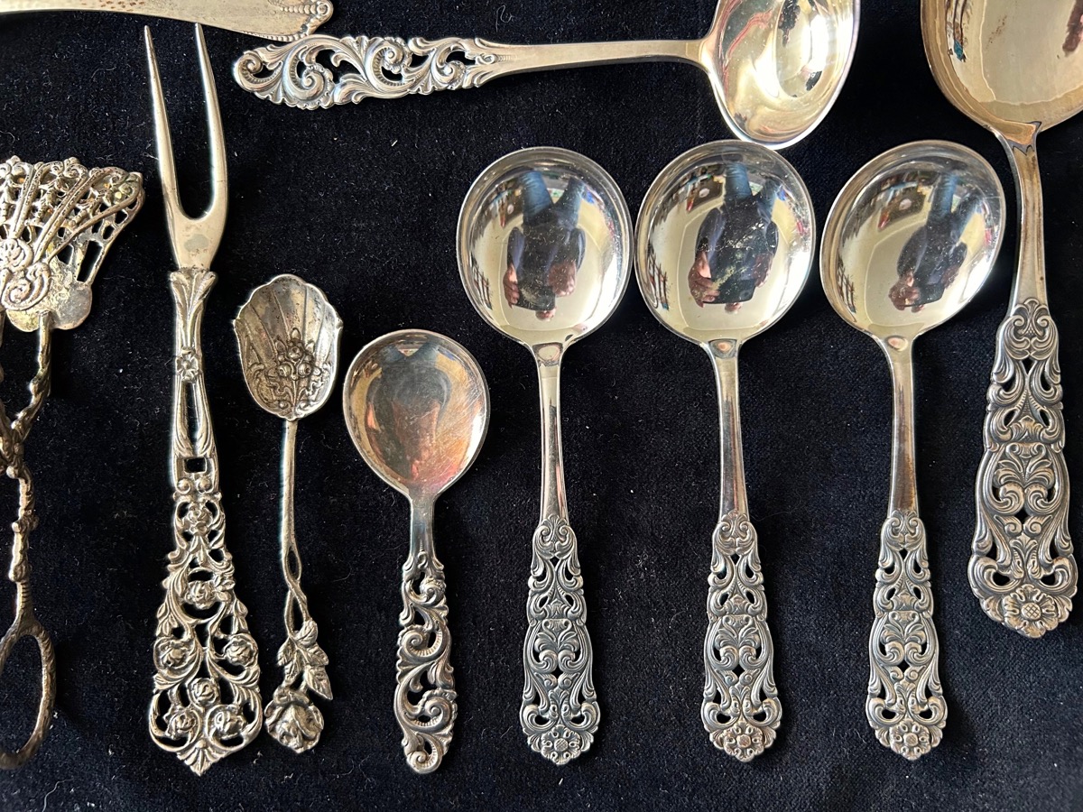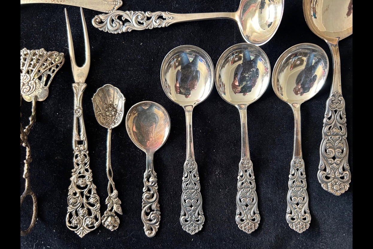Kontrollerat silver: bla kaktänger -tårtspade -skedar - total vikt 530 gram. Säljes från välvårdat hem i Örebro utlämning Söndag 26 Oktober mellan kl 11.00 -15.00 -adress och kontaktuppgifter kommer på mail efter betalning.