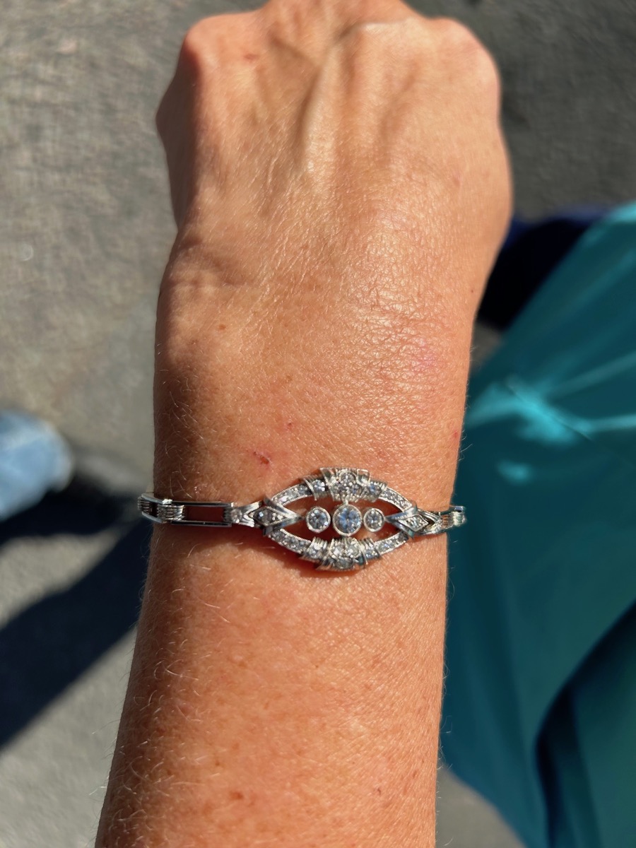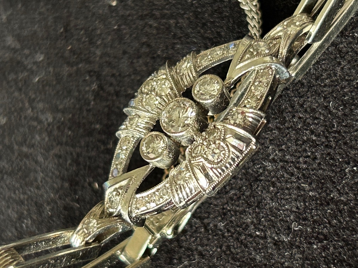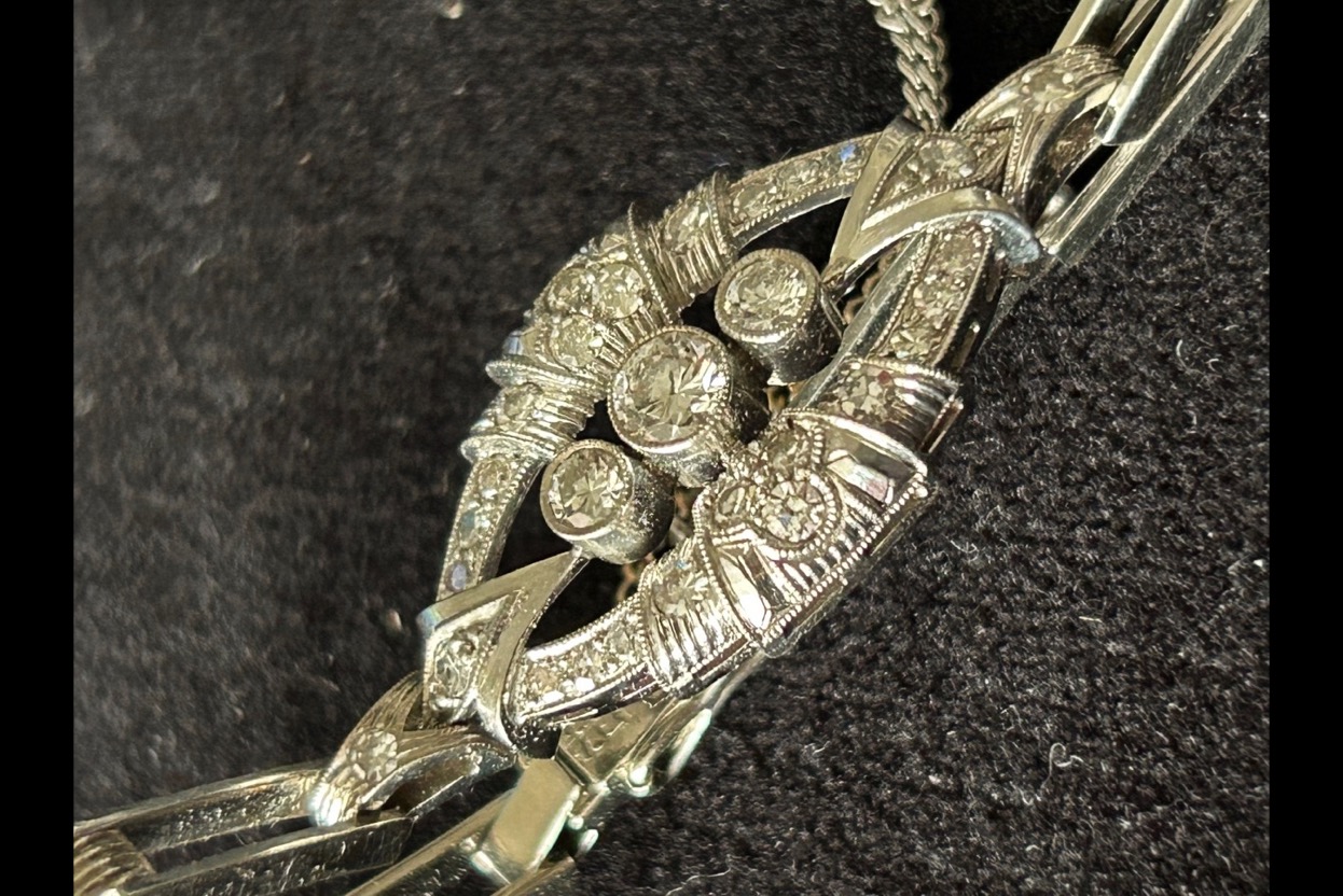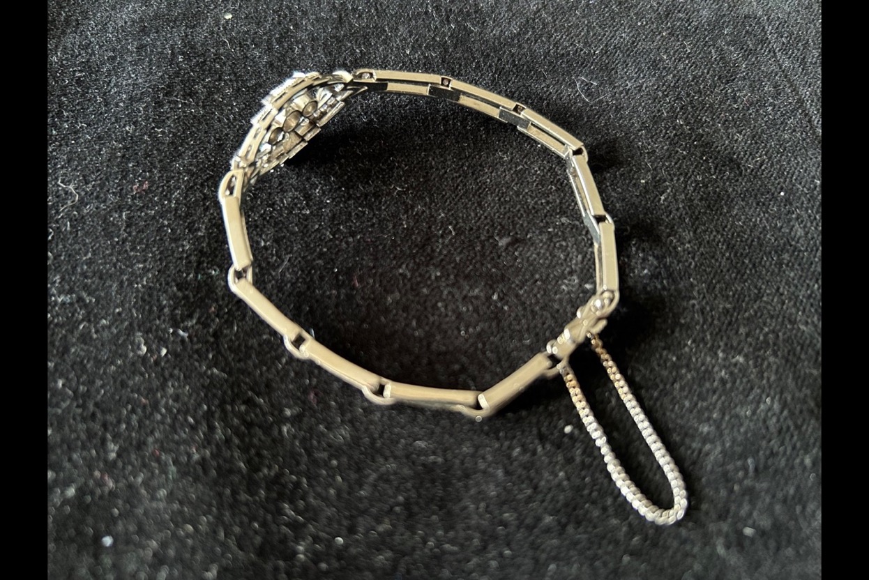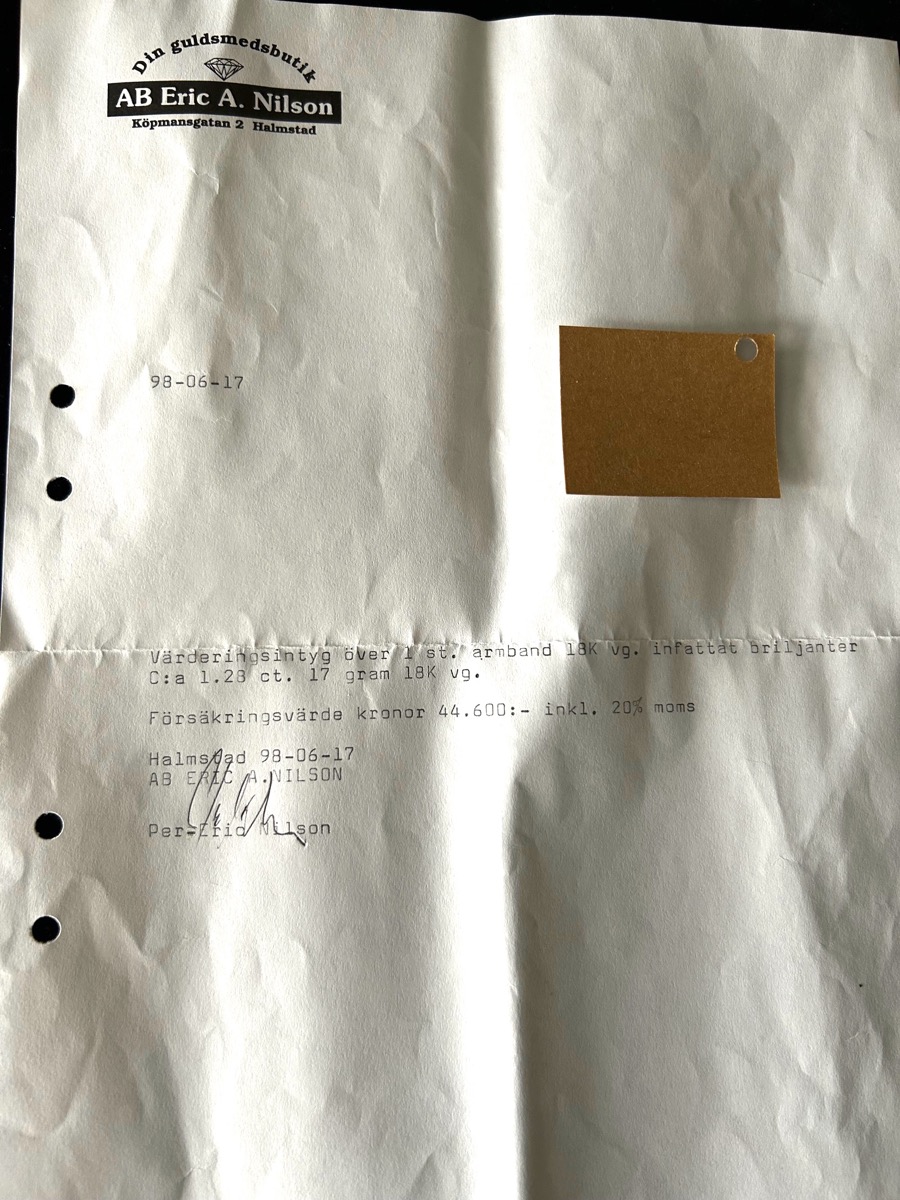 Armband i 18 karat vitguld med briljanter 1.28ct vikt 17 gram - längd 19 cm - intyg medföljer. Säljes från välvårdat hem i Örebro utlämning Söndag 26 Oktober mellan kl 11.00 -15.00 -adress och kontaktuppgifter kommer på mail efter betalning.