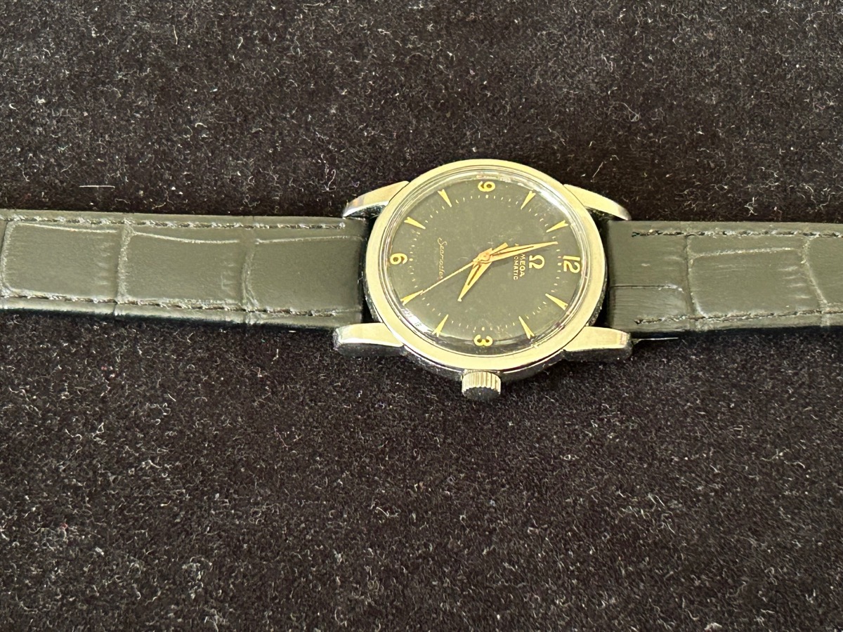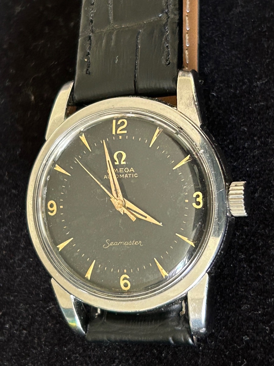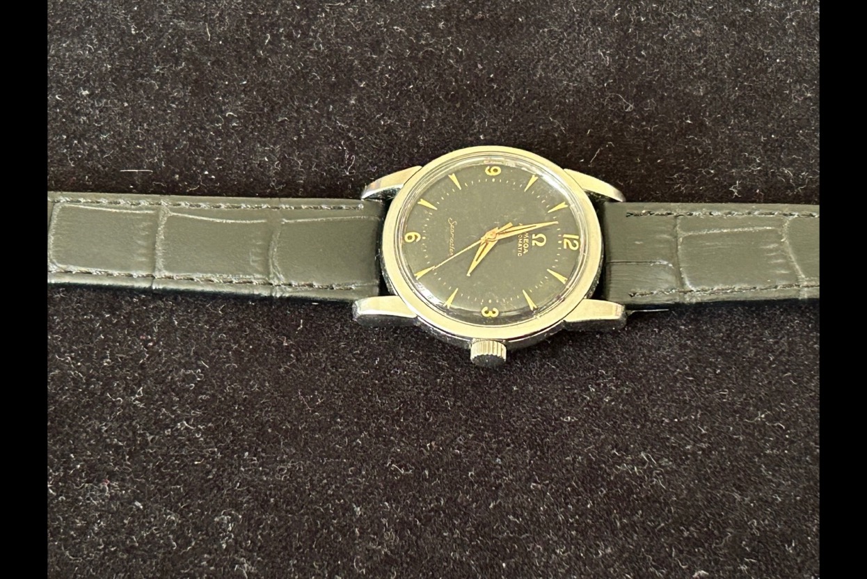 Herrarmbandsur Omega Seamaster automatic waterfroof 1950 tal -diameter 34 mm -väl fungerande. Säljes från välvårdat hem i Örebro utlämning Söndag 26 Oktober mellan kl 11.00 -15.00 -adress och kontaktuppgifter kommer på mail efter betalning.