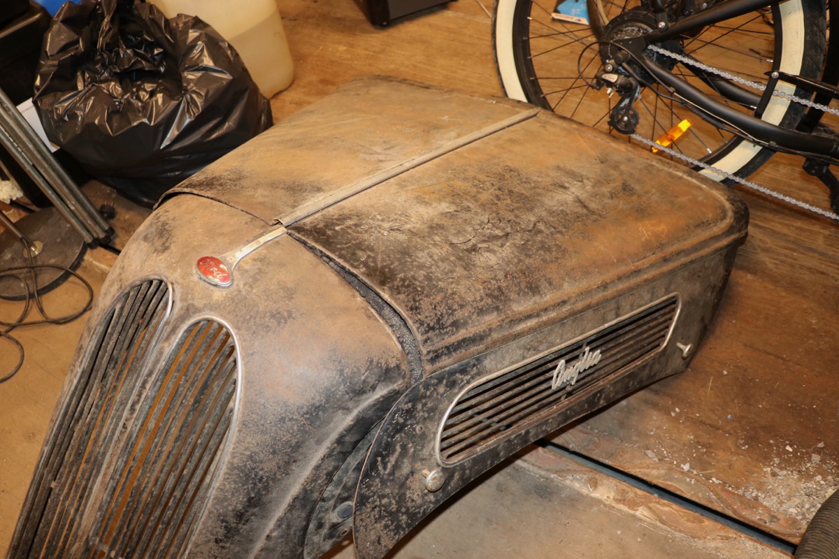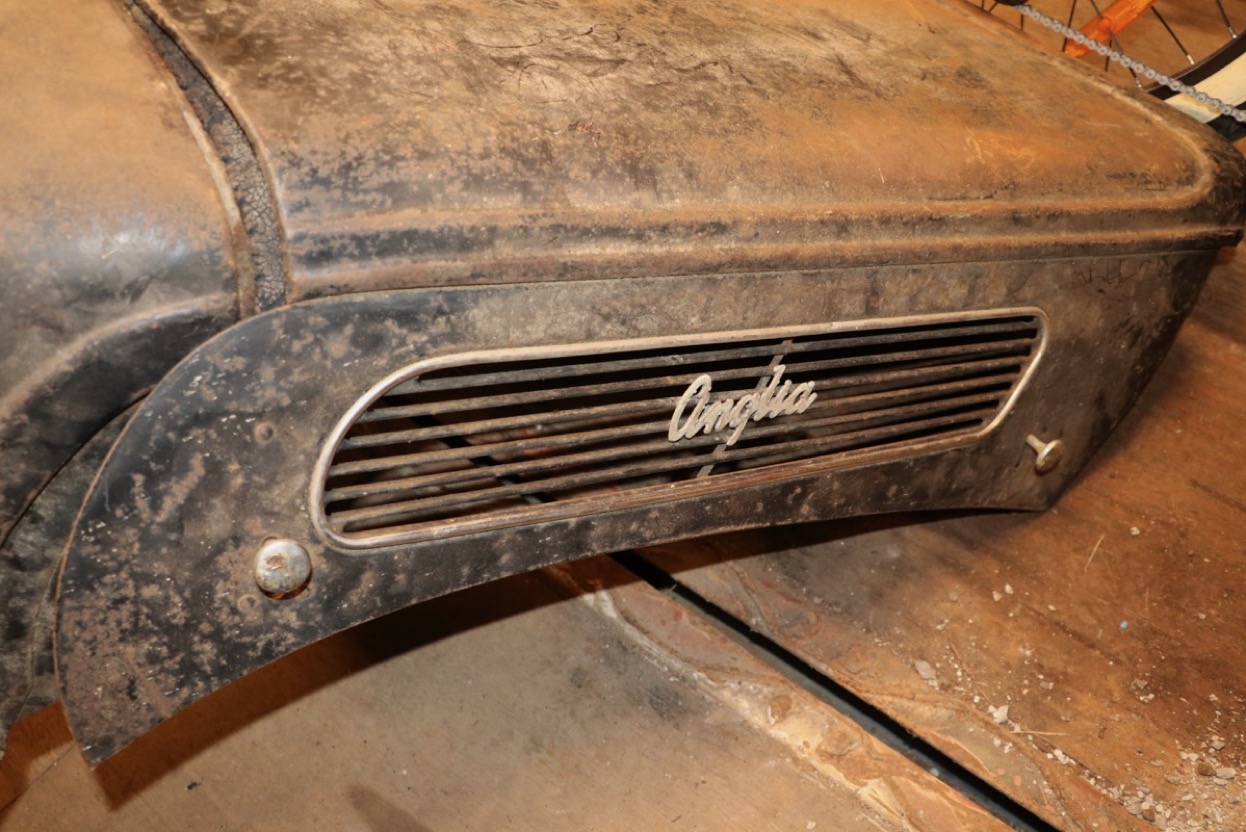 Veteran motorhuv till Ford Anglia. Lagerort Nora kommun - Vid ev visning och provkörning ring 070-545 8243. Avhämtning senast 10 dagar efter avslutad auktion -kontaktuppgifter kommer på mail efter betalning.