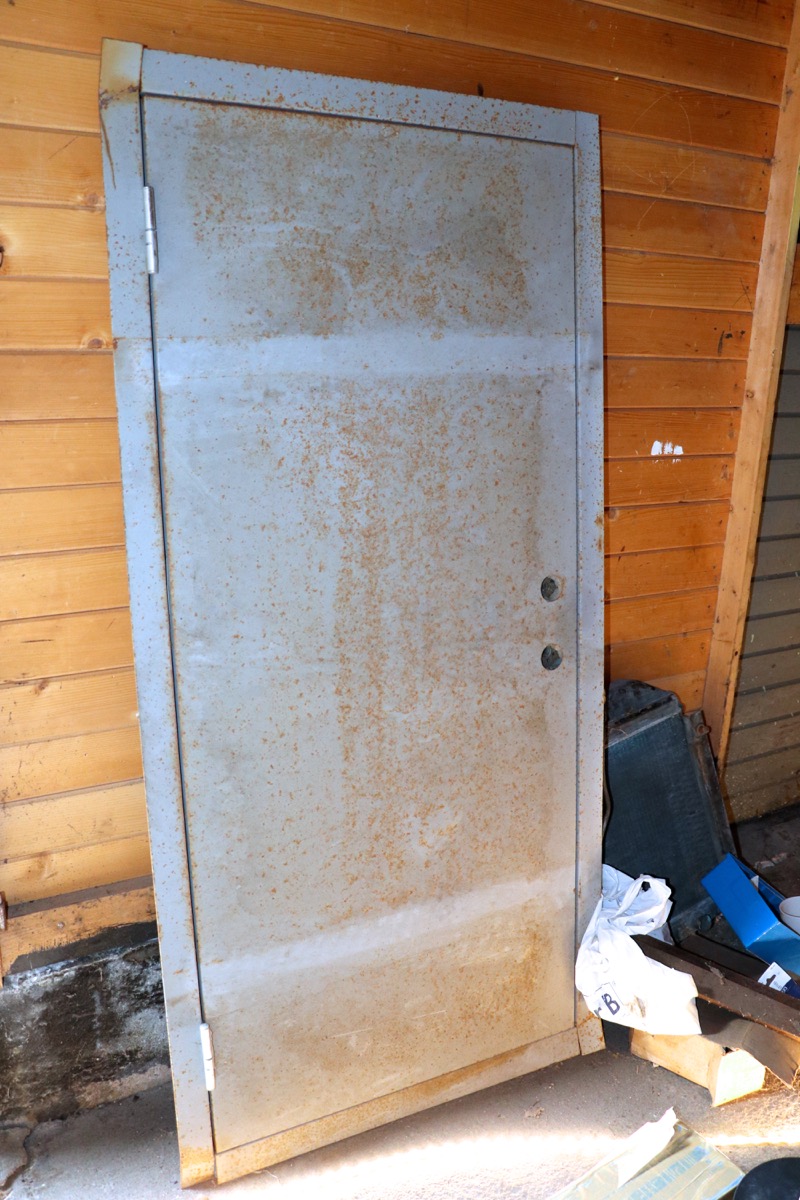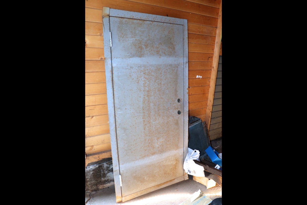 Mindre branddörr i plåt -isolerad -mått med karm: bredd 675 mm höjd 1520 mm. Lagerort Nora kommun - Vid ev visning ring 070-545 8243. Avhämtning senast 10 dagar efter avslutad auktion -kontaktuppgifter kommer på mail efter betalning.