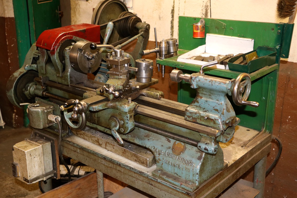 Metallsvarv AB ÅSBRINK o CO Malmö -380V - längd 1100 mm - 10 tal svarvstål -borr chuck -morsekona - mm -elhandske får ersättas med ny. Lagerort ca 2 mil Norr Lindesberg -avhämtning efter ök på tel -kontaktuppgifter kommer på mail efter betalning.
