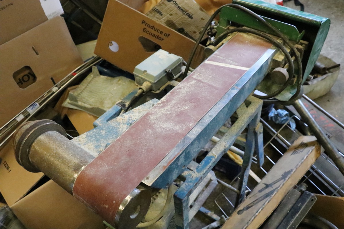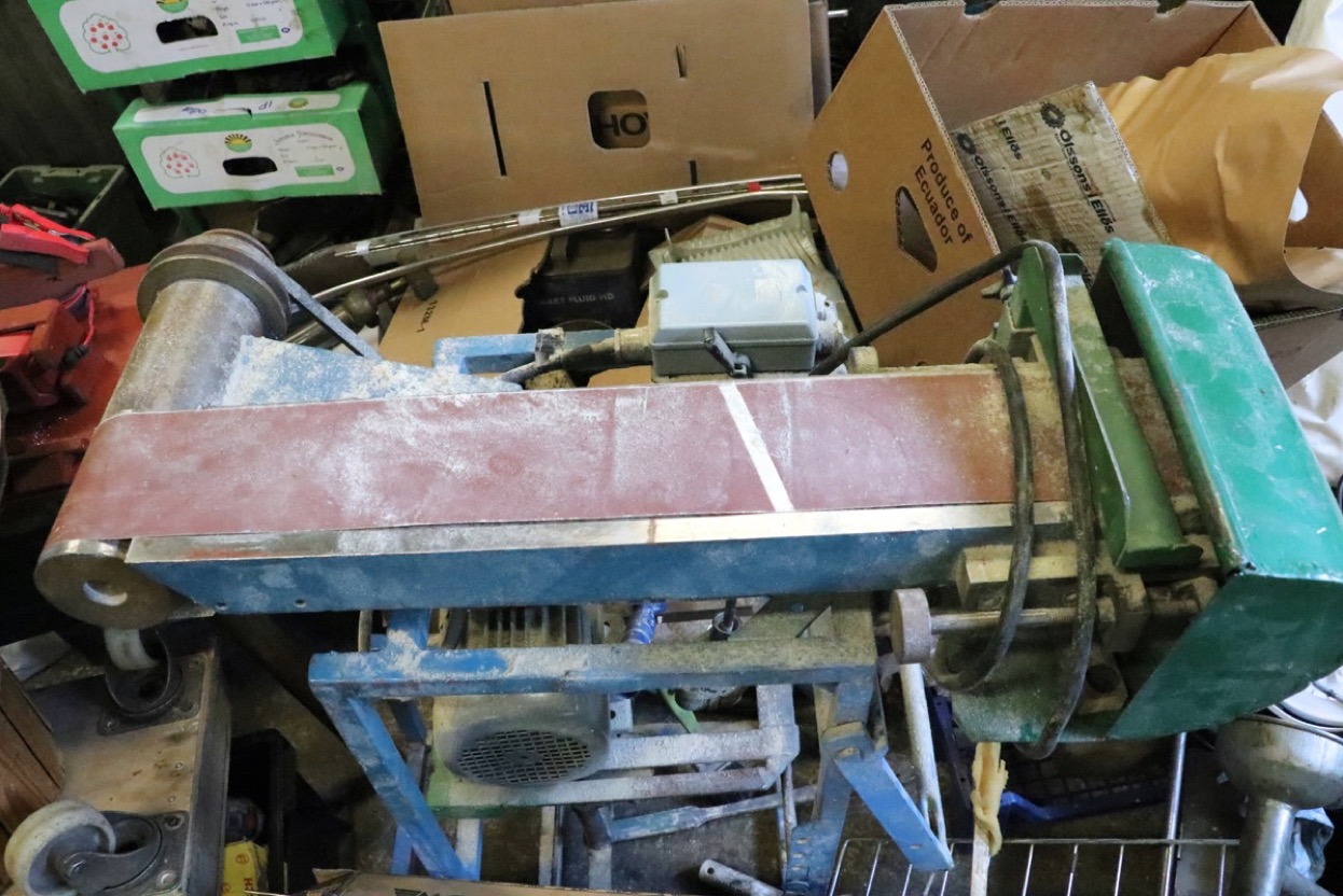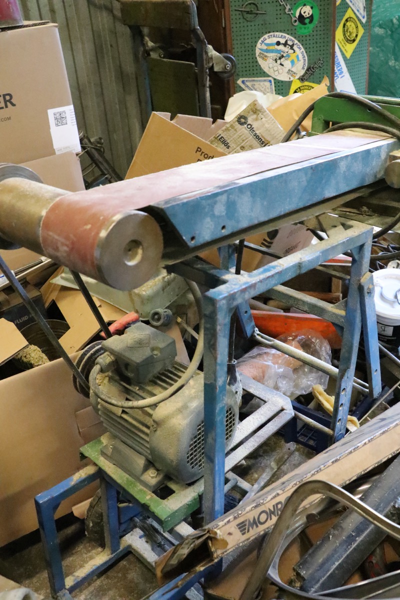 Bandputsmaskin 380V på stativ -arbetsbord 120 x 600 mm. elhandske får ersättas av ny. Lagerort Nora - utlämning på plats i markplan Måndag 17 November mellan 17.00 -18:30 -kontakt uppgifter och adress kommer på mail efter betalning.