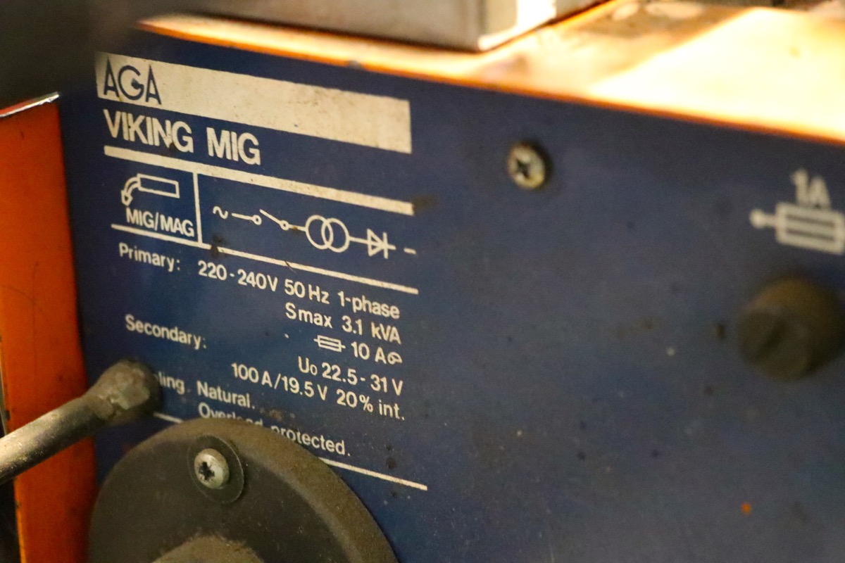 Migsvets AGA VIKING MIG -230V - komplett med tub och reducerings ventil - hjul försedd. Lagerort Nora - utlämning på plats i markplan Måndag 17 November mellan 17.00 -18:30 -kontakt uppgifter och adress kommer på mail efter betalning.