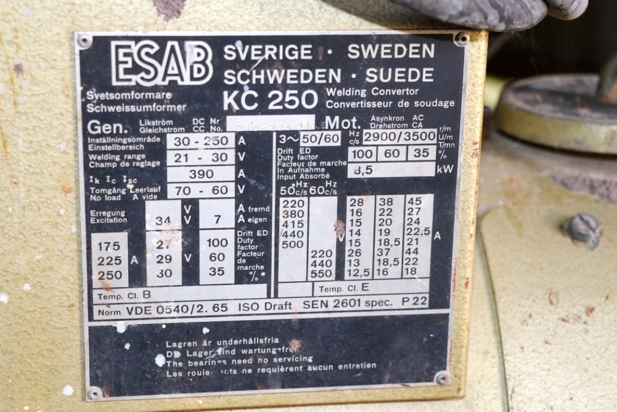 Pinnsvets ESAB KC 250 380V. Lagerort Nora - avhämtning efter ök på tel -kontaktuppgifter kommer på mail efter betalning.