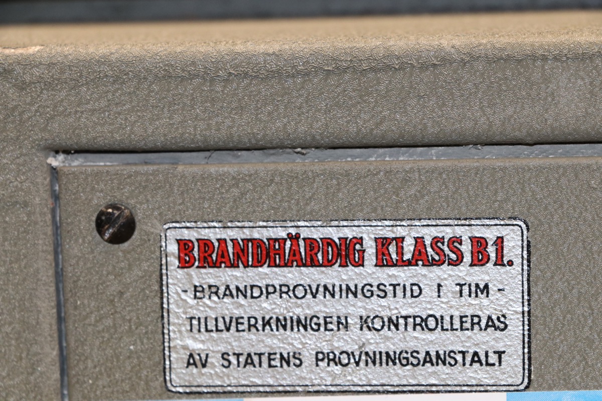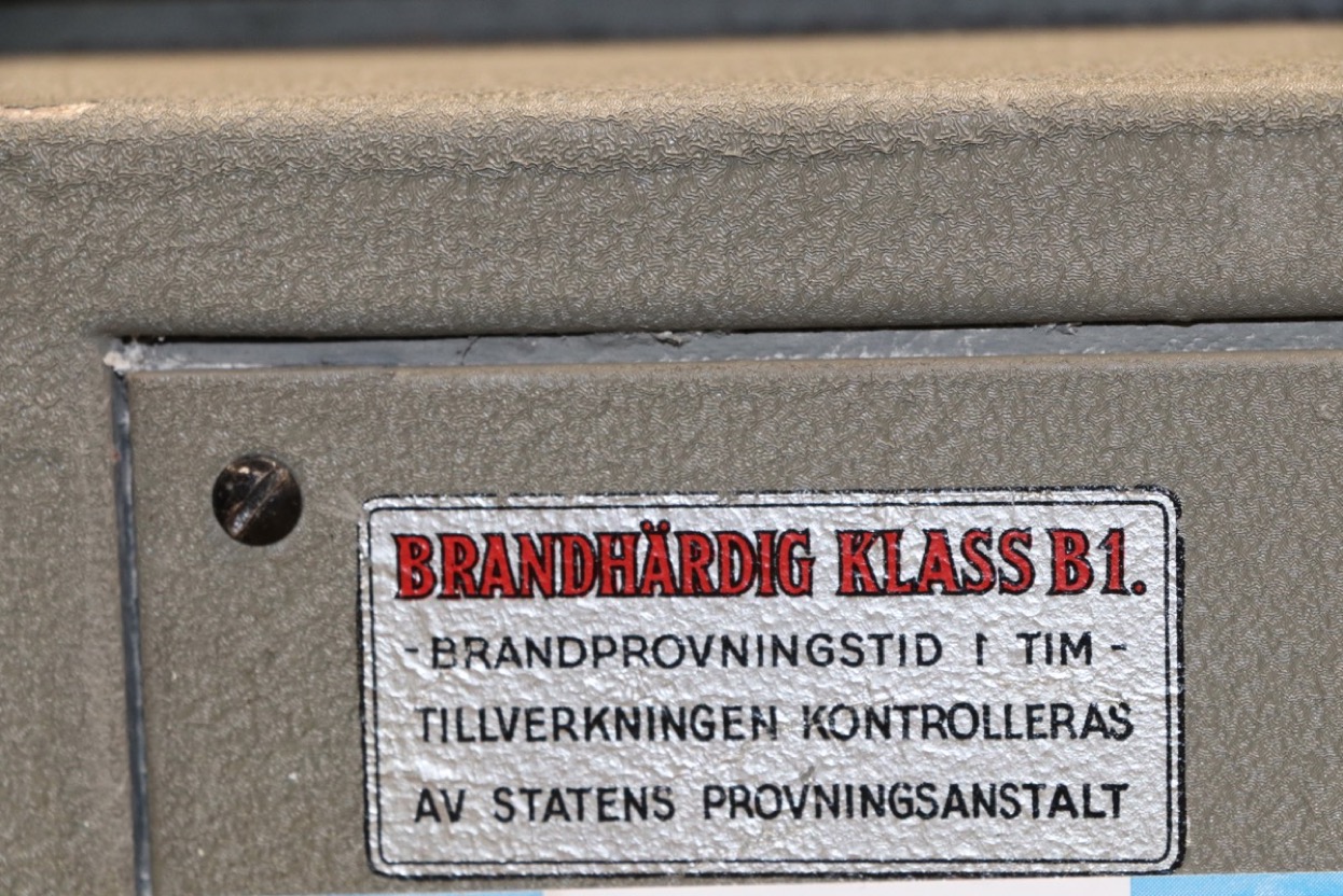 Brand säkert värdeskåp -brandklass 60 minuter -höjd 95 -bredd 55 x 54 cm - lås på lilla luckan insida saknas. Lagerort Lindesberg -lyft hjälp erhålles - avhämtning efter ök kontaktuppgifter kommer på mail efter betalning.