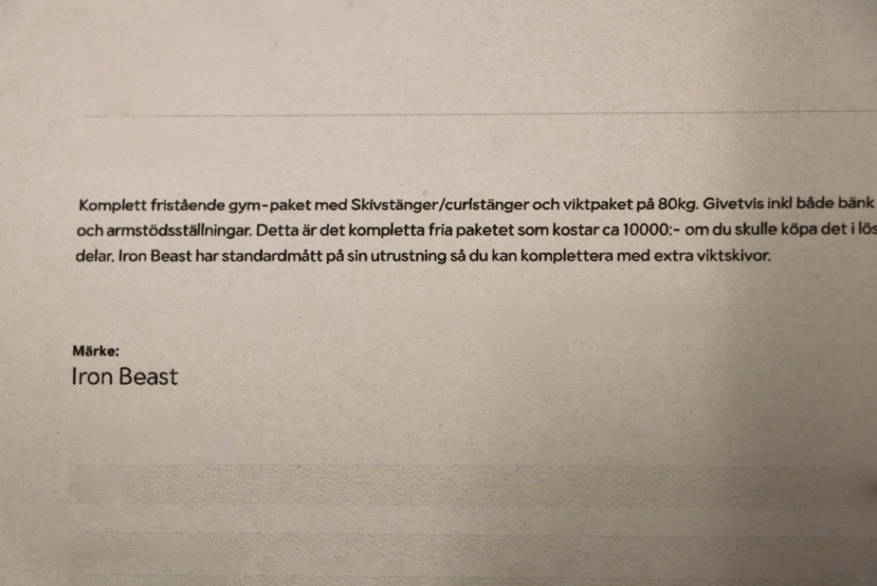 Hemmagym IRON BEAST med 80 kg vikter. Obetydligt använt . Lagerort Lindesberg -lyft hjälp erhålles - avhämtning efter ök kontaktuppgifter kommer på mail efter betalning.
