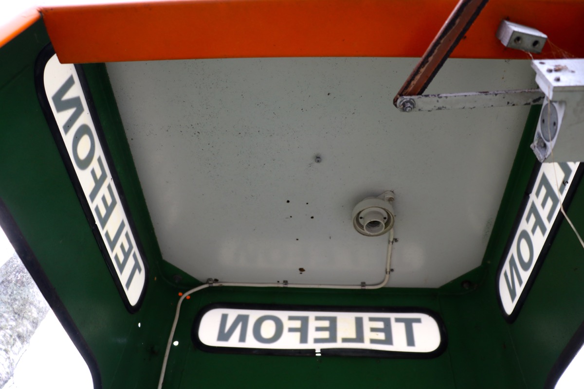 Telefonkiosk Televerkets model 61 -OBS 4-skyltad tidig version med telefontext på samtliga 4 sidor i orört originalskick -även trätrall original -dock saknas mynttelefonen. Mått: höjd ca 2400 mm -bredd 880 x880 mm. Lagerort Nora - avhämtning efter ök - kontaktuppgifter kommer på mail efter betalning -last hjälp med maskin kan erhållas. OBS att moms tillkommer på klubbat pris.