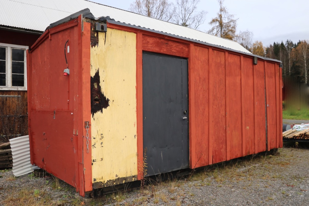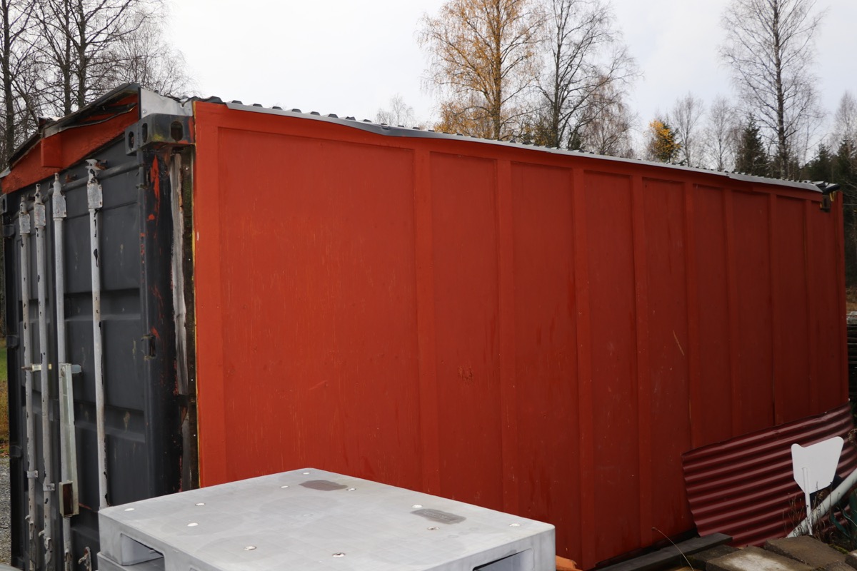 Förråds container med sidodörr -längd 6000 mm - bredd 2400 mm - höjd 2400 -utvändigt beklädd med trä -invändigt med elcentral - isolerad sidodörr i plåt -fasad behöver översyn - rost - säljes utan innehåll. Lagerort Nora - avhämtning efter ök - kontaktuppgifter kommer på mail efter betalning. OBS att moms tillkommer på klubbat pris.