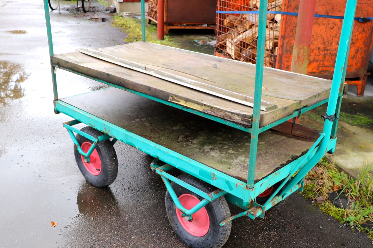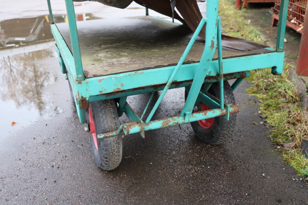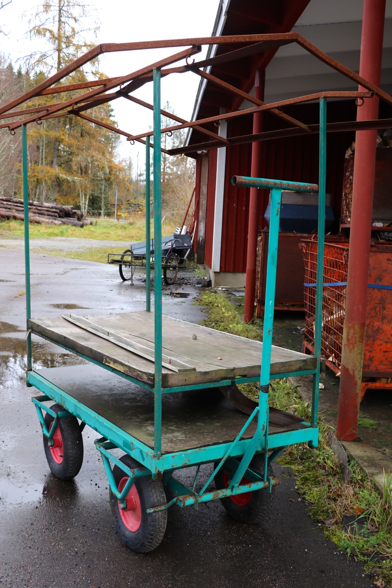 4 hjulsvagn 1000 x 750 mm - bromsade hjul. Lagerort Nora - avhämtning efter ök - kontaktuppgifter kommer på mail efter betalning -last hjälp med maskin kan erhållas. OBS att moms tillkommer på klubbat pris.