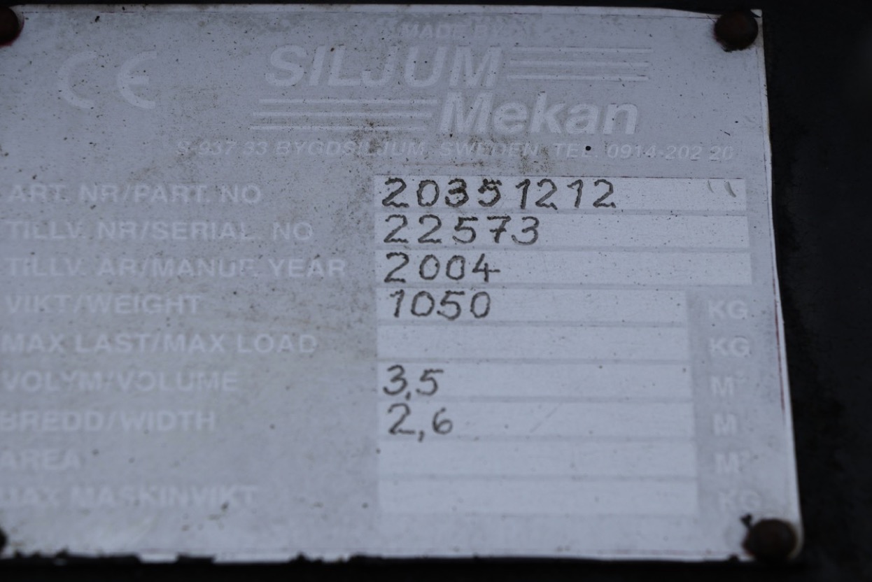 Multi/klaffskopa SILJUM med stora BM -fästet - 3.5 M3 - årsmodell 2004 -vikt 1050 kg -bredd 2600 mm + klaffar 2 x 900 höjd 720 mm - ger totalt max ca 4600 mm i arbetsbredd -skopan ger ett gott intryck och har brukats för lastning spån/flis. Moms tillkommer på klubbat pris. Lagerort Lindesberg - avhämtning efter ök -lasthjälp erhålles . Kontaktuppgifter kommer på mail efter betalning.